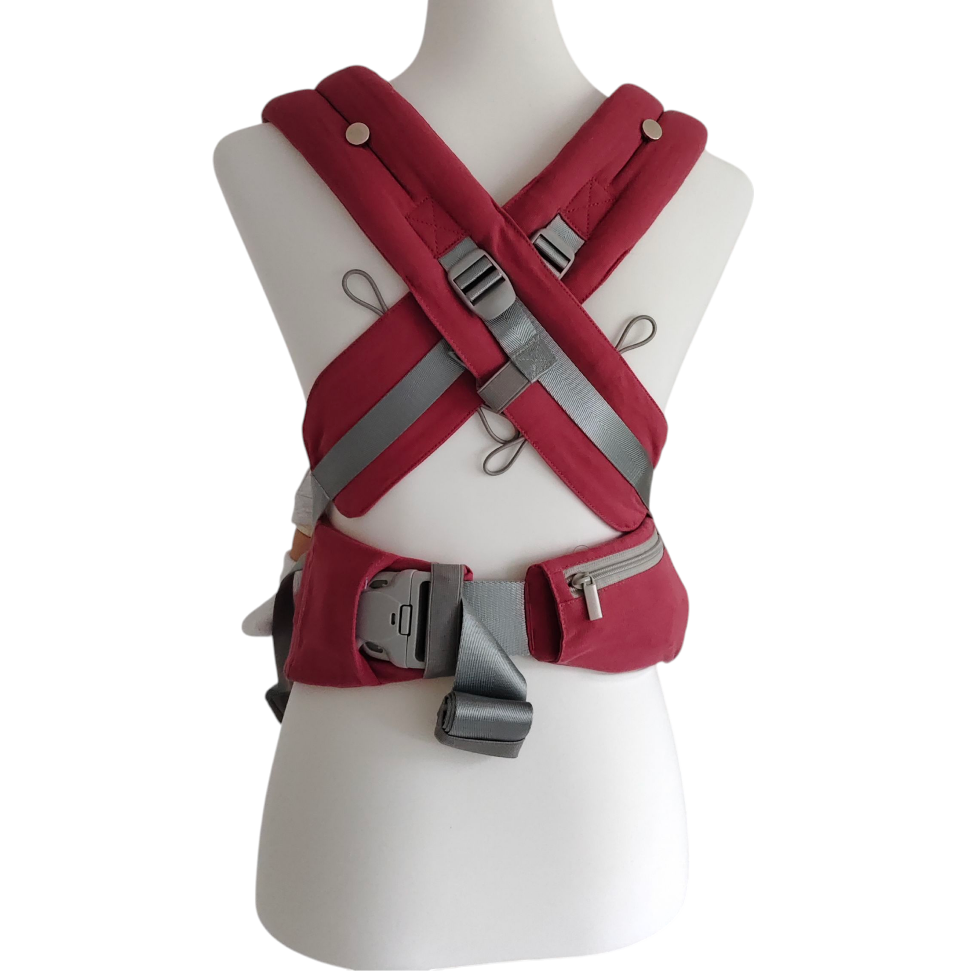- Vorne: ganz nah bei deinem Herzen, Träger am Rücken gekreuzt – stabil und bequem